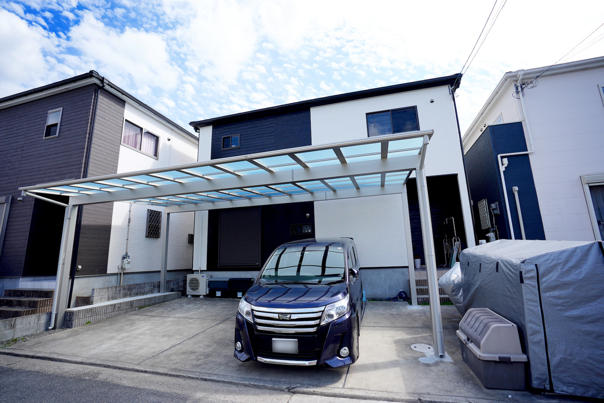大切なお車が雨曝しになってしまっているのが気になるとの事で、カーポートの設置工事をご依頼いただきました。